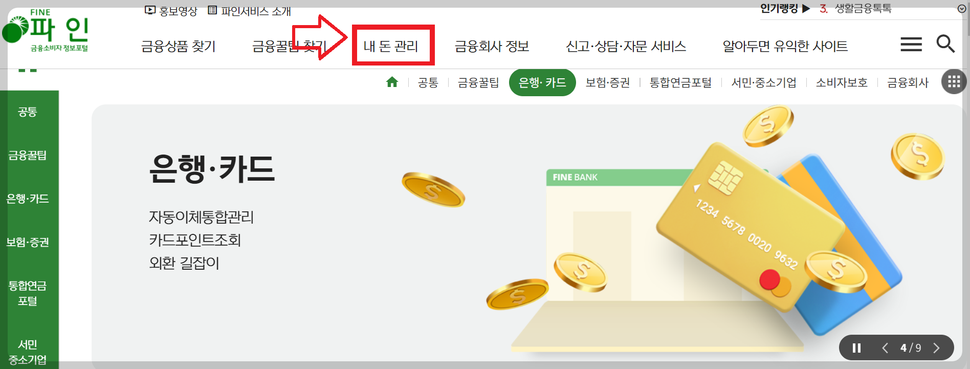 1️⃣파인(fine) 홈페이지에서 '내돈관리'에 접속해주세요.