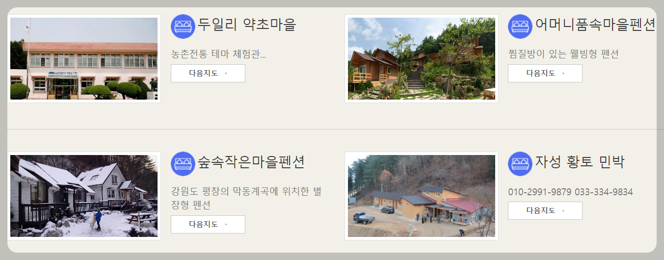 - 플람하우스펜션: 깊은 산골짜기에 위치해 조용한 휴식과 함께 자연을 만끽할 수 있는 숙소입니다.