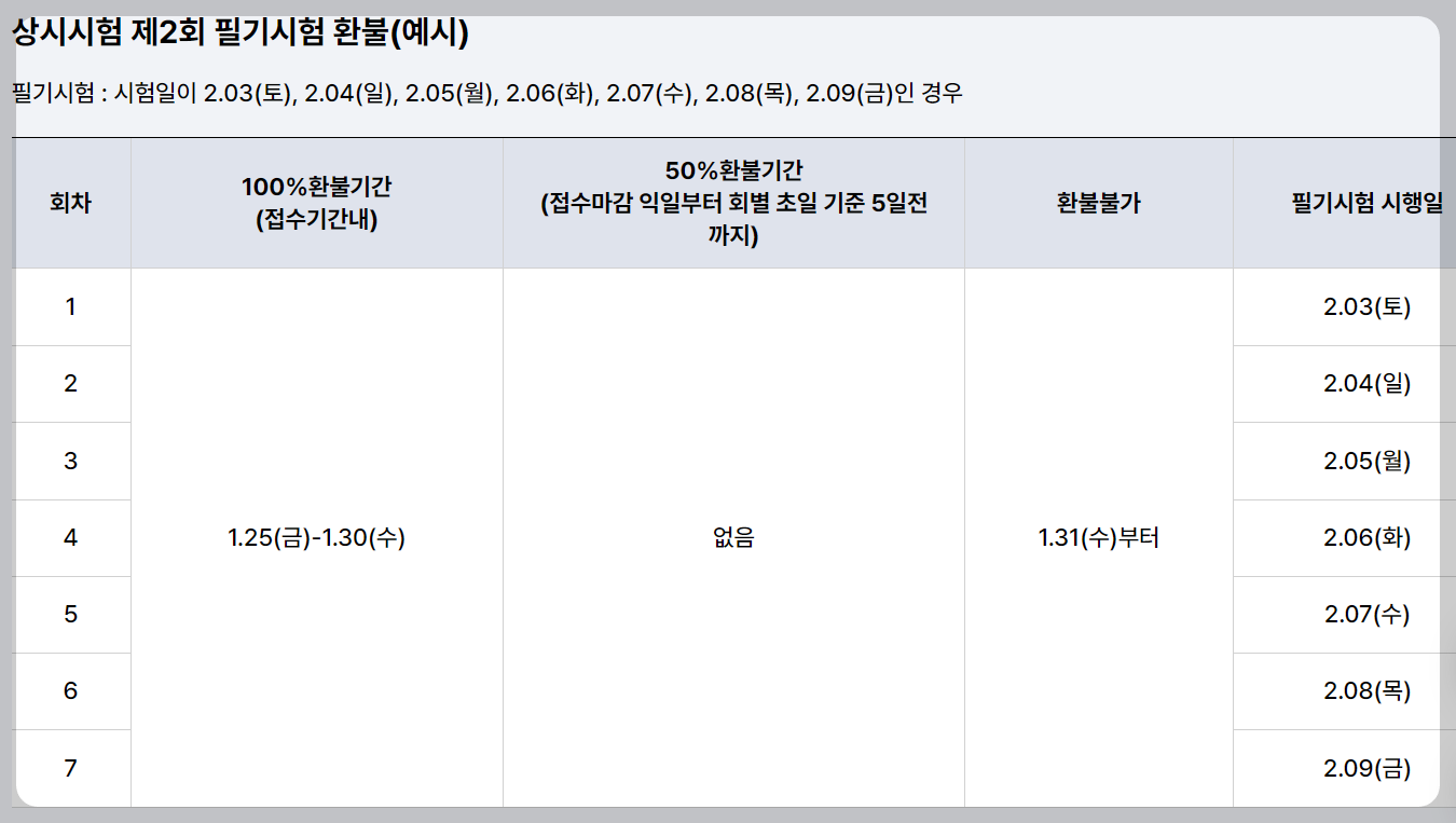 - 시험 시행회별 초일: