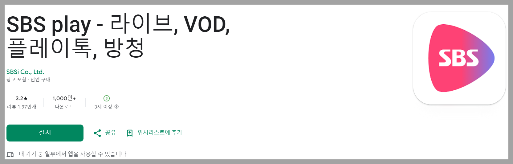 ✔ 실시간 시청 가능: TV 없이도 SBS 방송을 실시간으로 볼 수 있음
