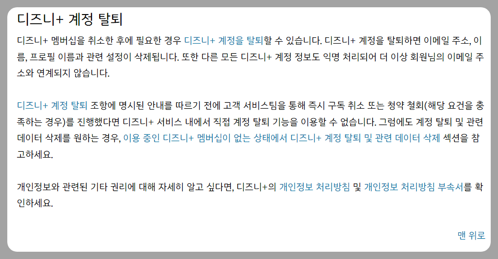- 디즈니플러스 멤버십을 해지한 후 완전히 계정을 삭제