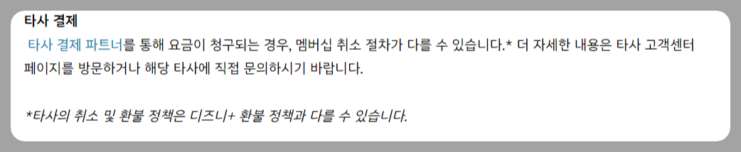 - 디즈니+ 직접 결제한 월간 멤버십만 가능 (타사 결제 이용자는 불가)