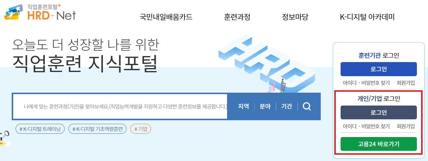 - HRD-Net 사이트 접속: HRD-Net 사이트를 방문합니다.
