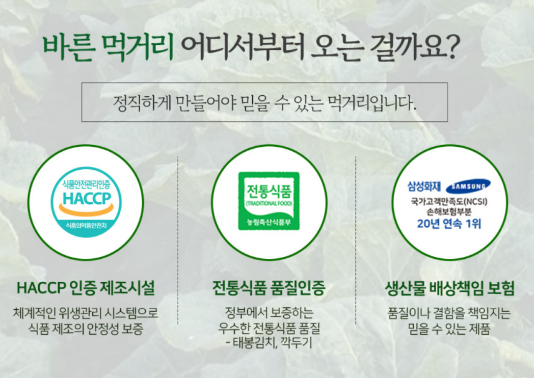 또한, 만이 식품에서는 자색고구마 김치 제조방법 특허까지 냈으며, 품질 좋은 국산 통총각무 사용하여 구매자 평에 높은 점수를 받았습니다.
