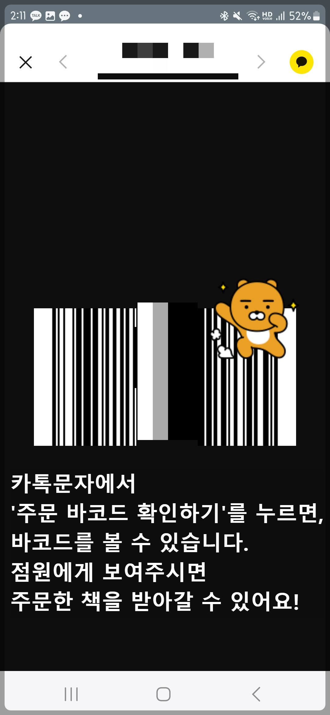 2. 알림톡에서 제공되는 주문번호와 바코드를 확인하세요.