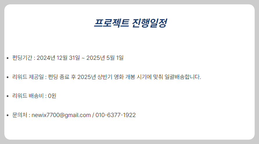 6. 프로젝트 일정: 펀딩 및 개봉 계획