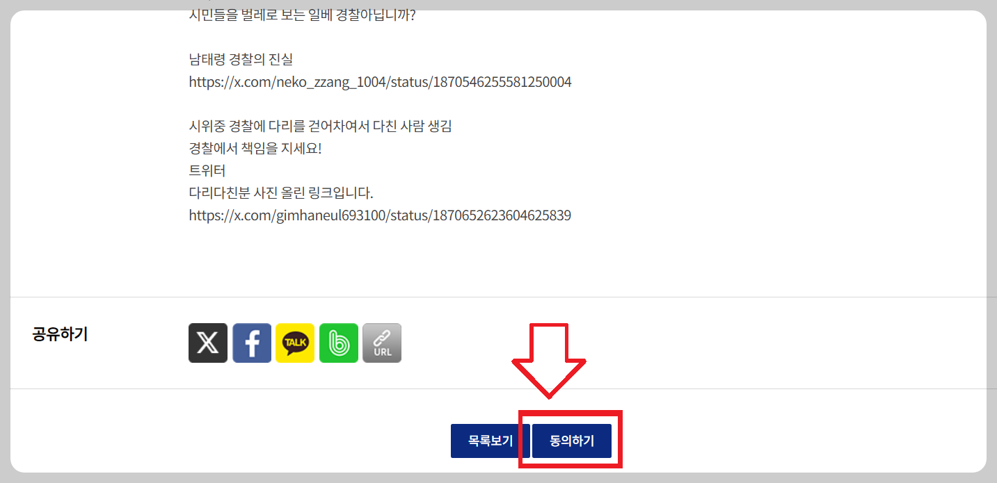 2️⃣ 청원 내용 확인 및 동의하기