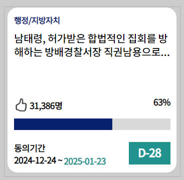 - 남태령 경찰 직권남용 청원 국회 홈페이지(👈여기)로 이동하시면 됩니다.