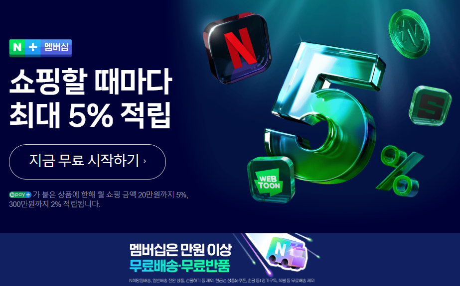 ✔ 네이버쇼핑 기본 1% 적립 + 멤버십 추가 4% 적립 (최대 5%)