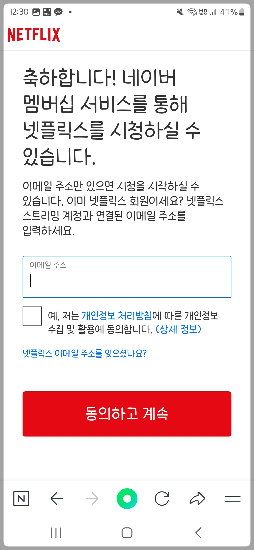 5️⃣ 기존 넷플릭스 계정이 있다면 로그인 / 없다면 신규 가입