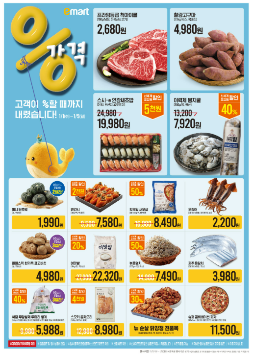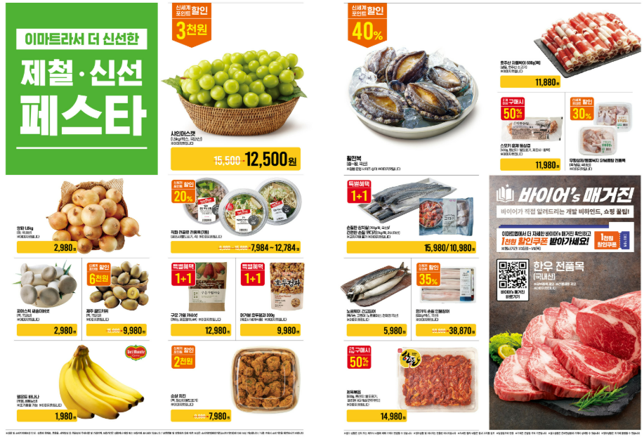 - 신선식품 1+1 행사: 제철 야채와 과일 포함