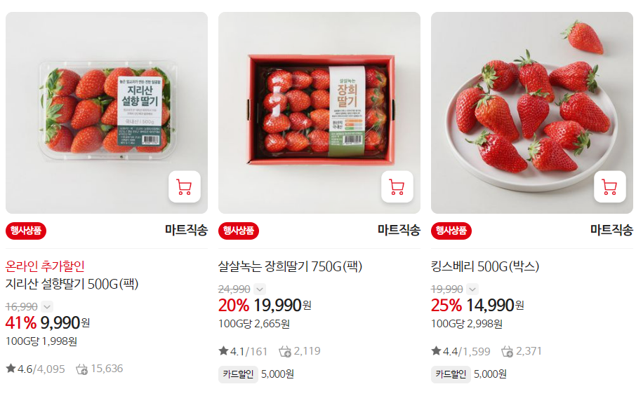 - 딸기(500g): 행사카드 결제 시 9,990원
