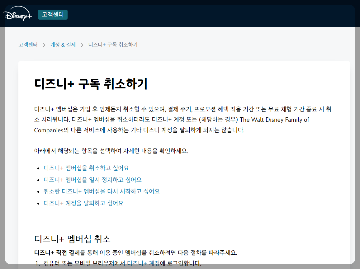 🔴2. 디즈니플러스 자동 결제 해지 방법 (공식 홈페이지에서 직접 가입한 경우)