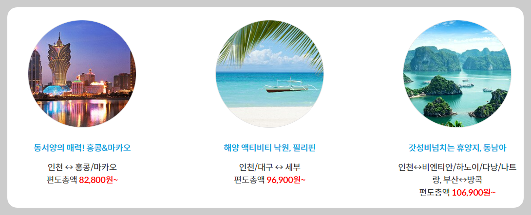 - 인천 ↔ 홍콩/마카오: 편도 총액 82,800원~