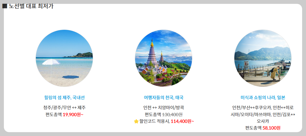 제주항공 노선별 최저가 안내
