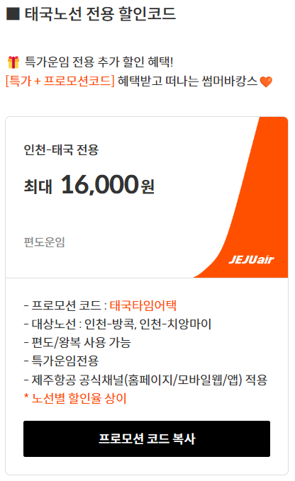 동남아 태국노선으로 이번 여름 휴가때 노선을 정했다면, 태국노선 전용 할인 프로모션 코드도 있으니 아래 내용 참고하셔서 코드 받아 적용시키시길 바랍니다.