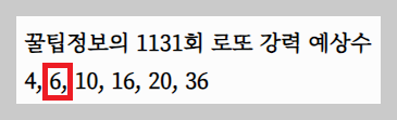 참고로 제가 저번주 토요일 1131회 로또번호를 6개 추려서 공유해드렸는데요. 이번에는 그 중에 1개를 맞췄습니다.