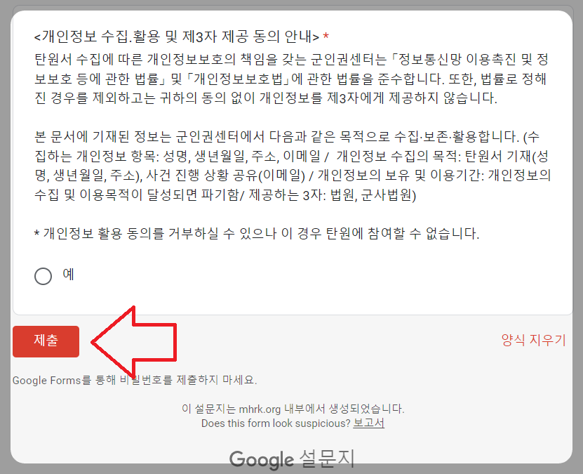 서명 제출 전 개인정보 수집 및 활용 동의가 필요합니다.