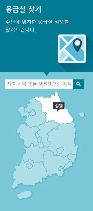 위의 병원지도를 보시고, 지역을 검색한 뒤 쉽고 빠르게 응급실 정보나 병원위치를 파악하시면 되겠습니다.