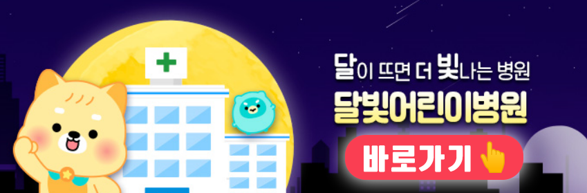 만약 우리 아이들이 갑작스럽게 밤에 아플 경우에는 큰 병이 아니라면, 밤에도 운영이되는 달빛어린이 병원을 이용하시면 되겠는데요.