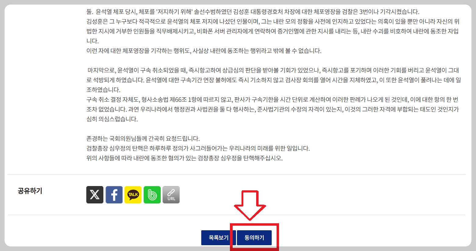 3. 청원 내용 확인 후 ‘동의하기’ 를 선택해주세요.