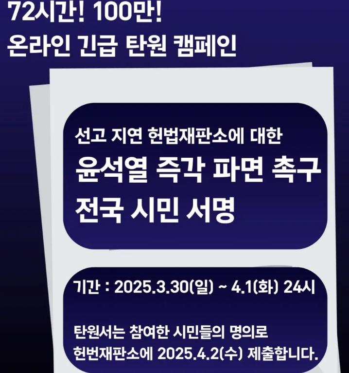 헌법은 국민의 것입니다. 헌재가 이 사실을 잊고 있다면, 우리는 다시 알려줘야 합니다. 72시간 안에 모이는 100만명의 이름은 단순한 숫자가 아닙니다. 그건 시민이 사법부를 지켜보는 눈이고, 민주주의를 지키는 최소한의 저항입니다.