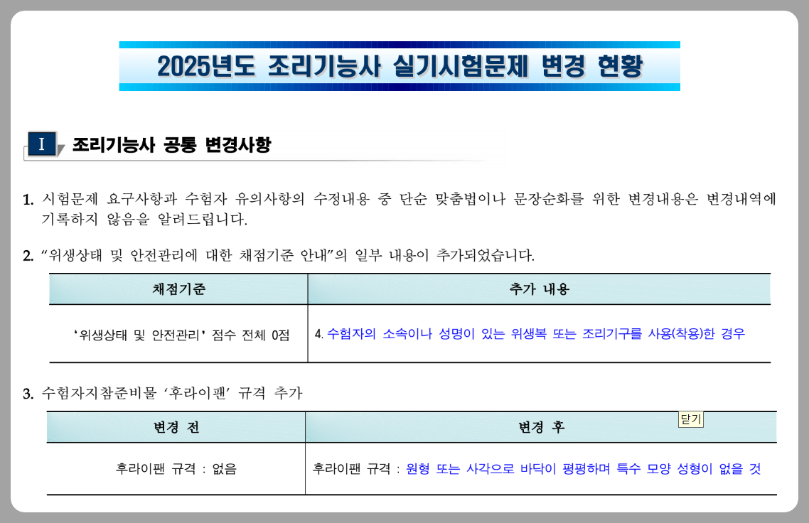 📌 2025년 일식 조리사 시험 개편 주요 내용