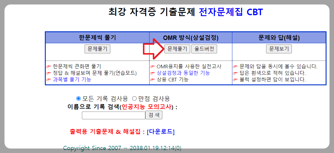 한문제씩 풀기→ 문제를 하나씩 확인하며 연습OMR 방식 풀기→ 실제 시험처럼 마킹하며 실전 대비기출문제 & 해설집 보기→ 문제와 답을 동시에 확인 가능
