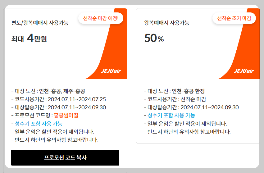 - 적용 탑승 기간: 2024.07.11 ~ 09.30