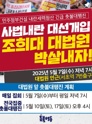 | 조희대 탄핵 사퇴 한덕수 처벌 서명운동 사이트 링크 바로가기 (2) | 2025.05.03 |