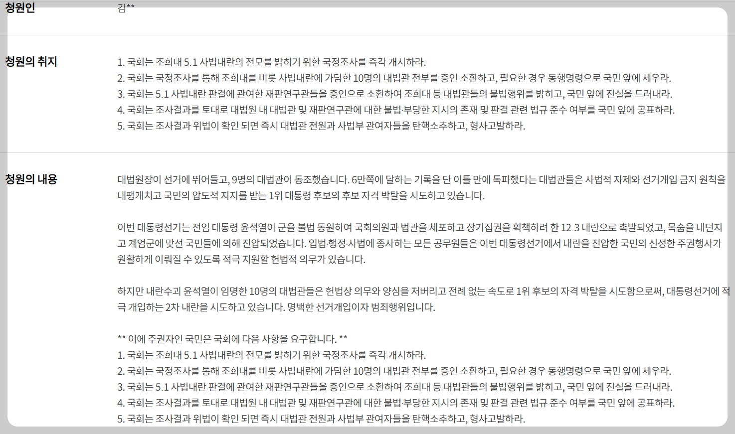 📌3. 국민청원이 요구하는 것