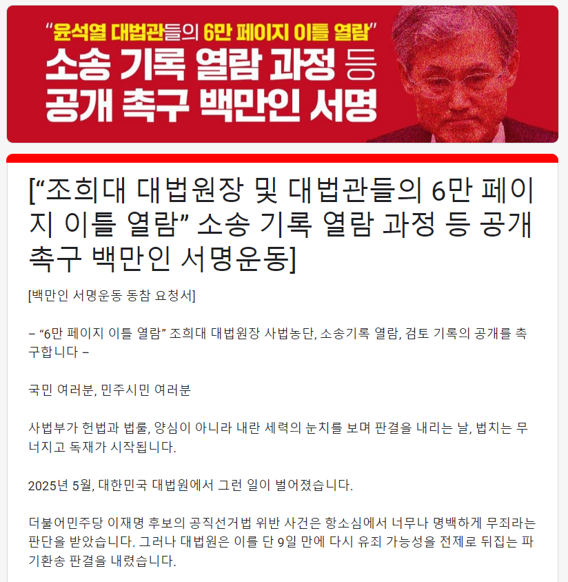 - 조희대 로그기록 백만서명운동 링크 바로가기👈