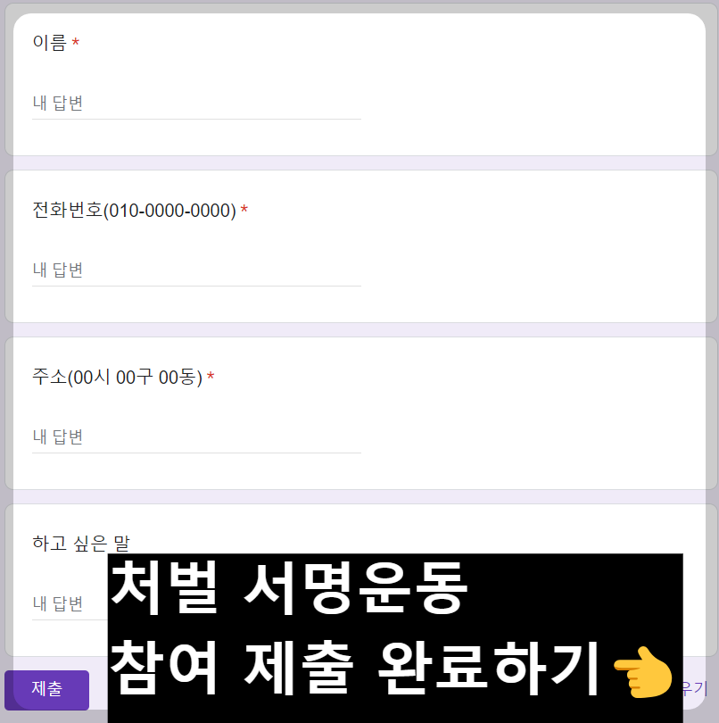 - 실명 인증 또는 로그인 없이도 참여 가능하며, 간단한 정보 입력만으로 서명 완료!