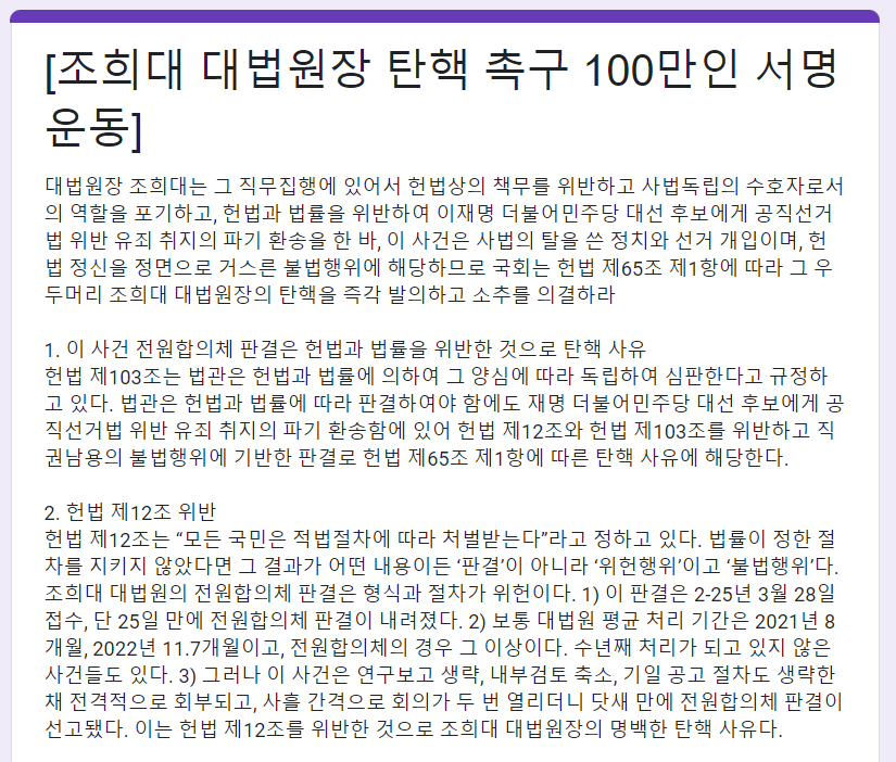 | 조희대 로그기록 청원 100만 서명운동 참여 사이트 링크 바로가기 (1) | 2025.05.03 |
