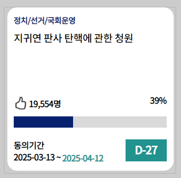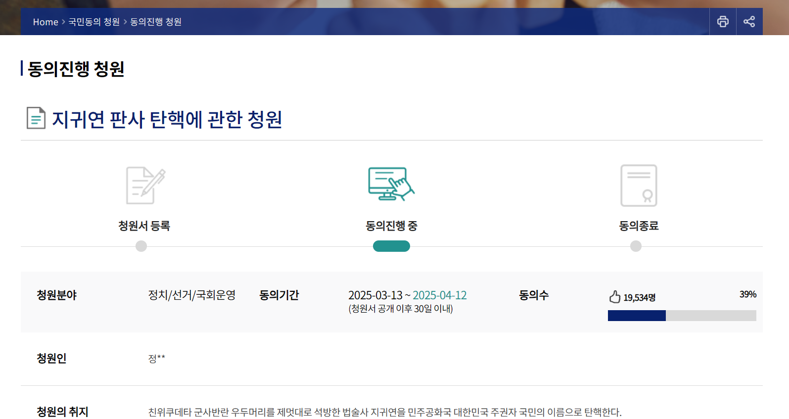 - 현재 동의자 수: 19,534명 (3월 13일 기준, 39% 달성)
