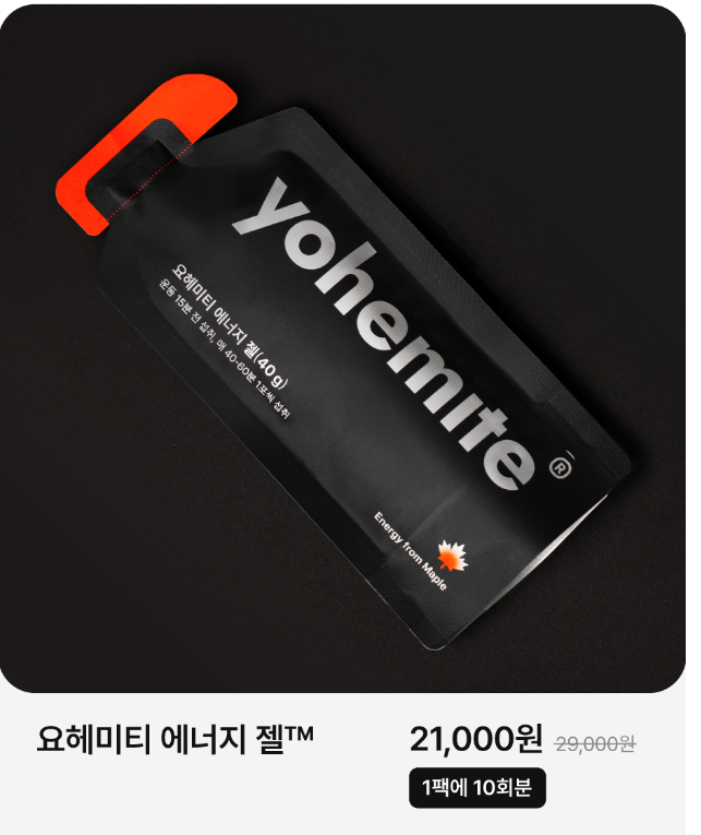 요헤미티 에너지젤은 퀘벡의 메이플 나무에서 추출한 천연 당 성분으로 만들어진 제품으로, 비건 및 글루텐 프리입니다. 탄수화물을 젤 형태로 농축하여 장시간 고강도 운동을 할 때 빠르게 에너지를 보충해주는 간식으로 이미 운동러버들 사이에서는 유명했는데요.