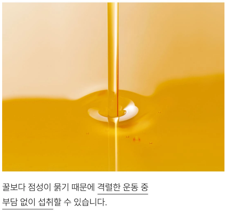 첫 맛은 달달한 메이플 시럽 맛이 강하게 느껴졌습니다. 은은한 천연 청포도 향이 뒤따라와 새콤달콤한 맛이 입안을 감쌉니다. 식감은 약간 점성이 있지만, 격렬한 운동 중에도 부담 없이 섭취할 수 있을 만큼 부드러웠습니다.