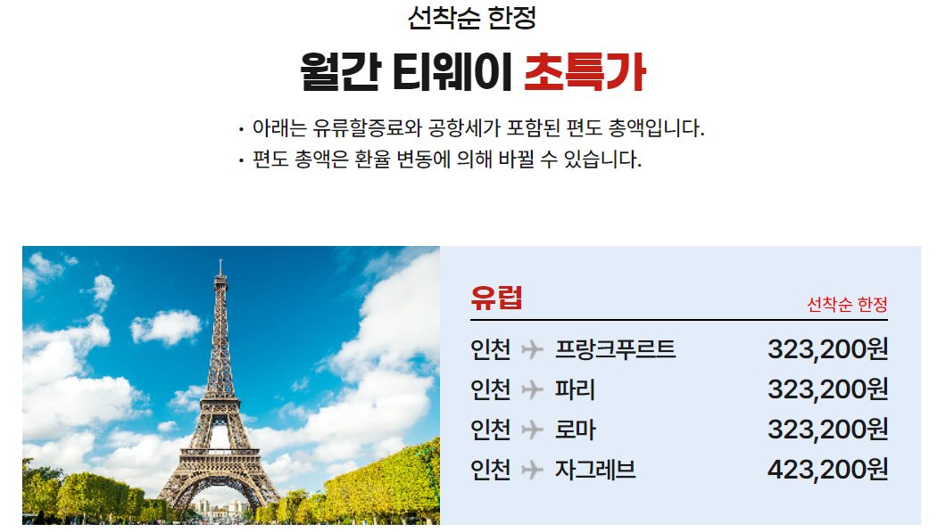 | 티웨이항공 8월 유럽 여행 특가 항공권과 할인쿠폰 꿀팁 모음집 (0) | 2024.08.03 |
