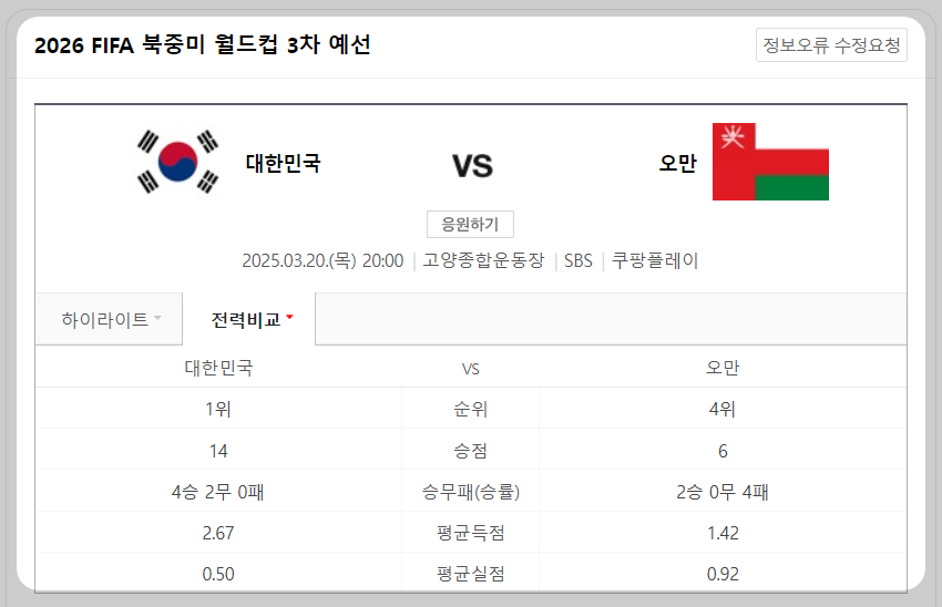대한민국 vs 오만전은 축구 팬들에게 놓쳐서는 안 될 중요한 경기입니다. 경기시간이 끝나기 전 놓치지마세요!