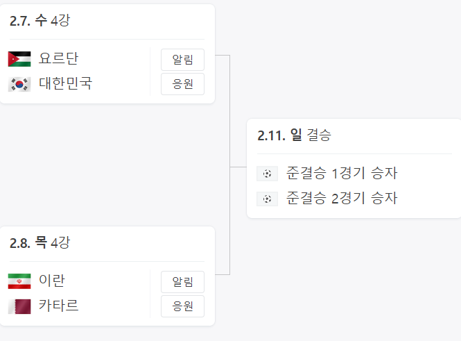 한국 요르단 축구 중계 4강전 시간은 2월 7일 오전 12시에 경기가 시작될 예정입니다.