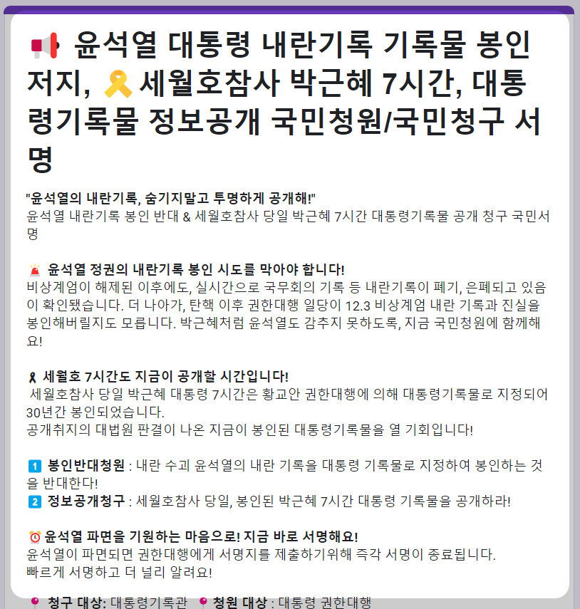 📌1. 윤석열 내란기록 봉인 반대 청원방법 안내