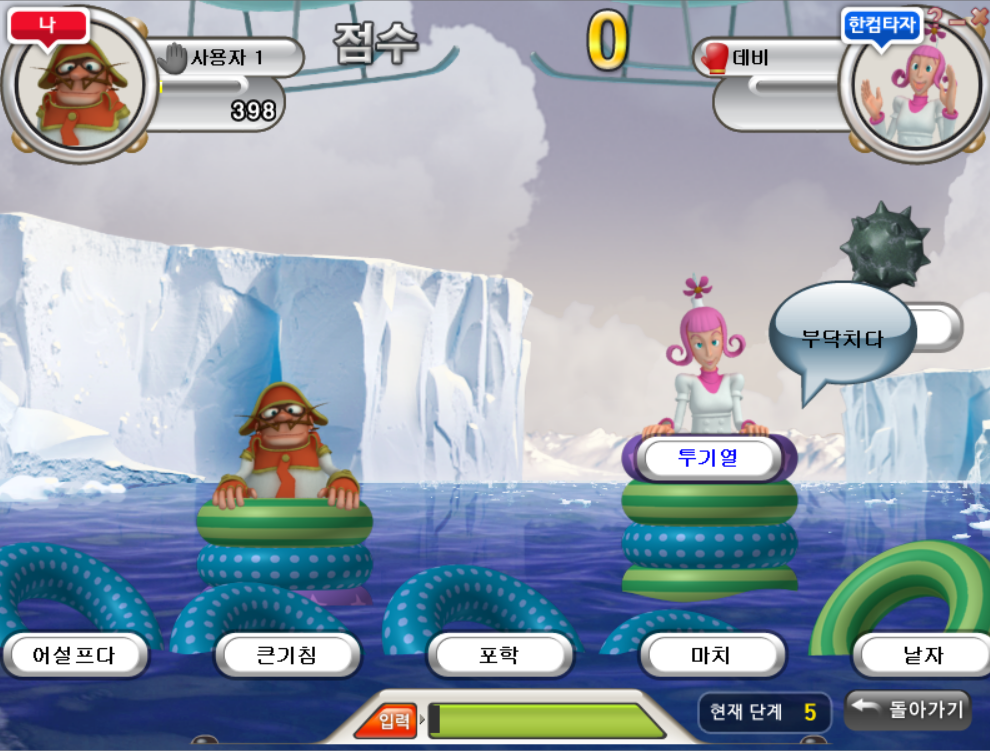 한컴 타자연습 구버전 게임 중에 해양 구조대라고 타자 쳐서 튜브 뺐는 게임도 직접 해보니 생각보다 흥미진진하고 재밌었습니다. (승부욕을 자극시키는 느낌이라 계속하다가 못 나올 뻔했습니다.)