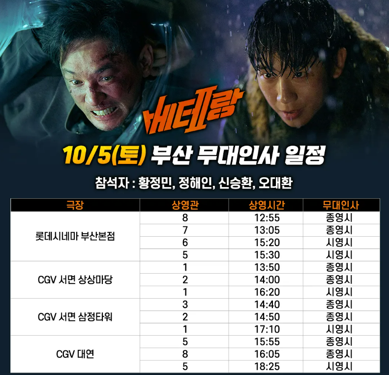 2024년 10월 베테랑 2 무대인사 일정 : 서울, 인천, 대구, 부산 (이벤트 참여방법)