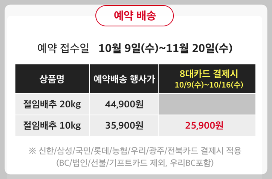 2024년 10월 롯데마트 절임배추 예약기간 가격비교 (카드사 할인 꿀팁)