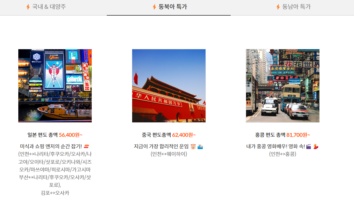 | 일본 | 56,400원~ | 인천↔나리타/후쿠오카/오사카 등 다수 |