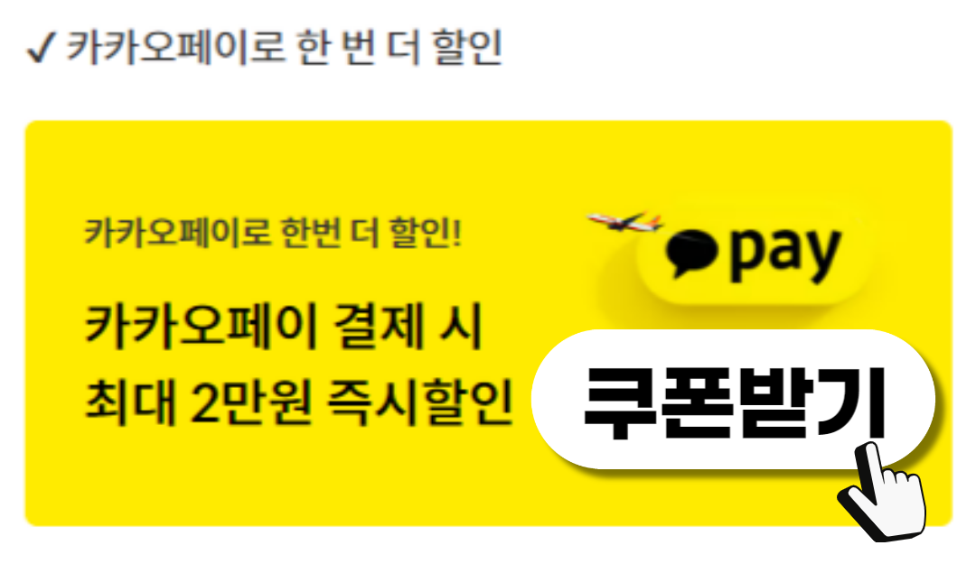 카카오페이로 제주항공 항공권을 결제할 경우 추가 할인 혜택을 받을 수 있습니다. 결제 시 최대 2만원의 즉시 할인이 제공되므로, 간편하게 결제하고 추가 할인까지 누릴 수 있는 기회를 놓치지 마세요!