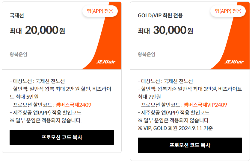 - GOLD/VIP 회원 전용 할인코드: 최대 30,000원 할인