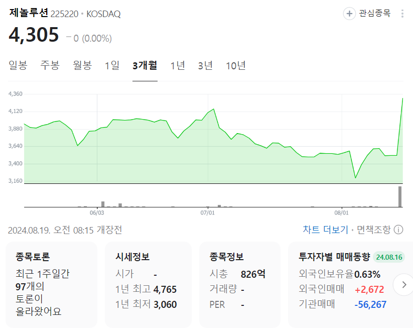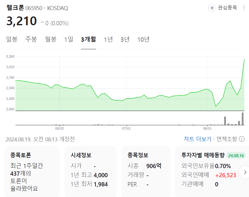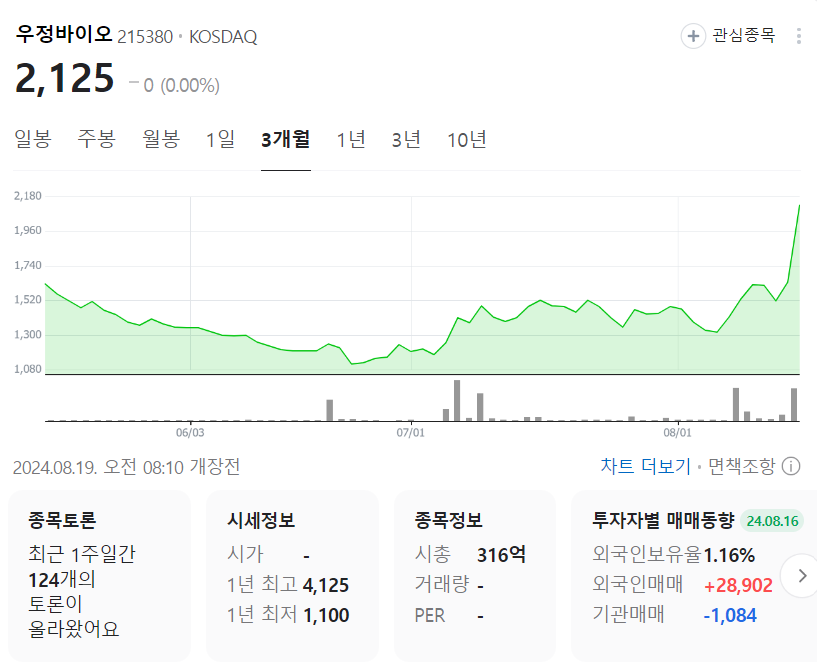 지난 6월 연저점(1100원) 대비 2개월 만에 약 93% 상승해 최근 코스닥 시장에서 상한가(29.97%)를 기록했습니다. 이는 시장에서의 뜨거운 관심을 반영한 결과입니다.