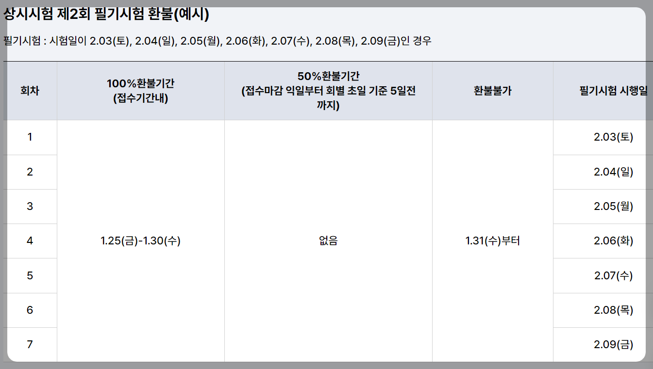 💰 50% 환불 가능: 시험 시행 5일 전까지 취소 시 (10원 단위 절사)
