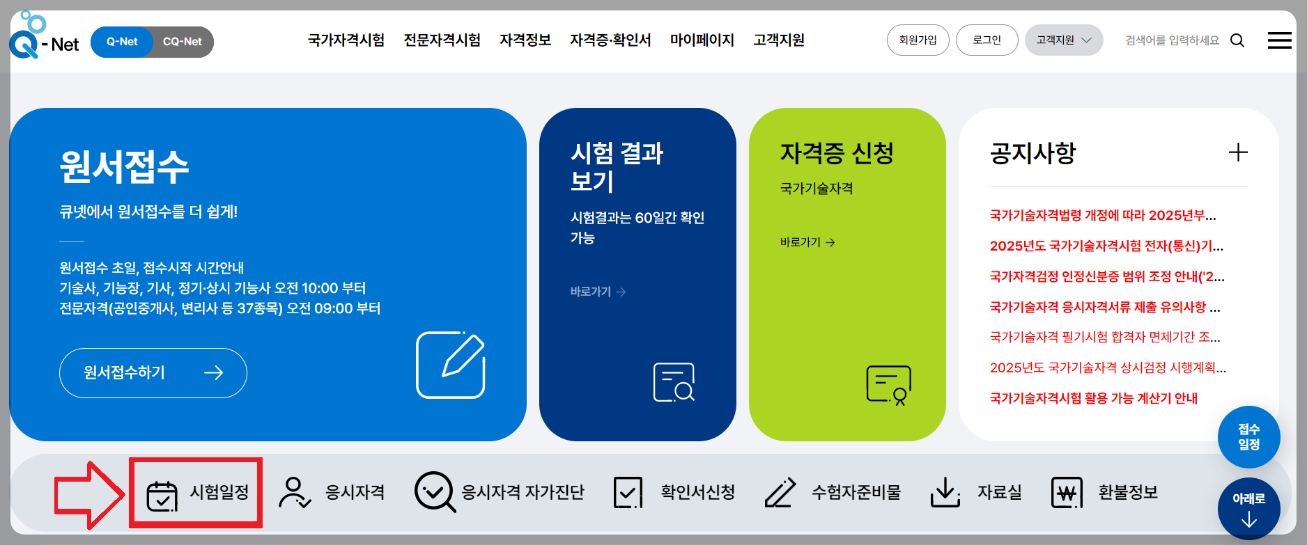 📍 1️⃣ 큐넷(Q-Net) 홈페이지 접속